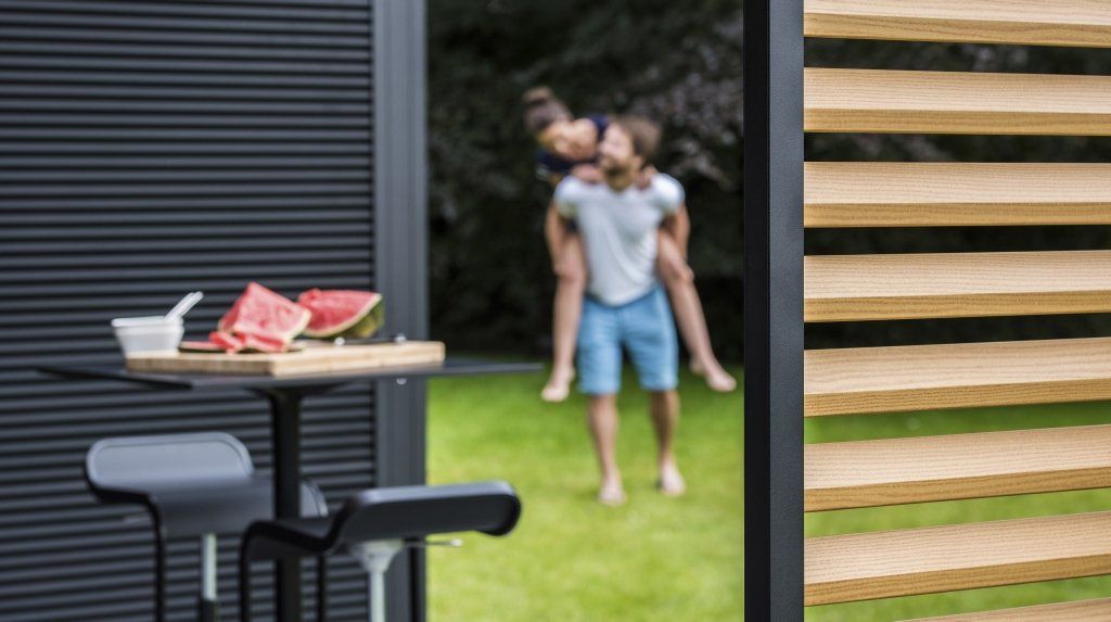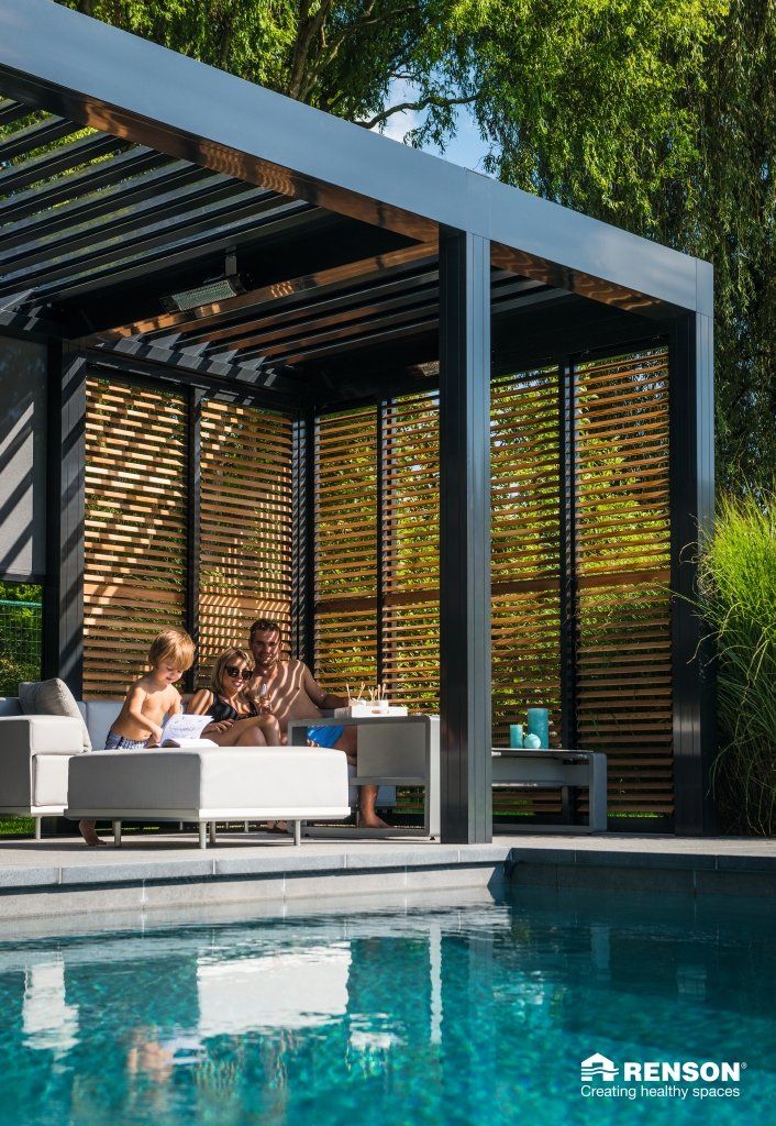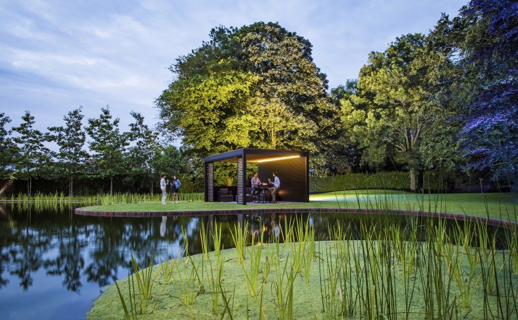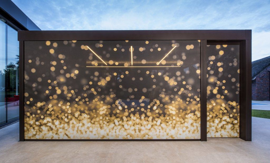 Camargue er en innovativ pergola eller terrasse overbygg med tak i roterende aluminiumslameller som kan åpnes og lukkes ved behov, med hjelp av sensorer og fjernkontroll. Denne flotte pergolaen kan i tillegg utstyres med usynlige integrerte vindtette sunscreens, skyvedører i glass eller skyvepaneler med loggia. Lys, lyd og varme kan også installeres integrert og trådløst.