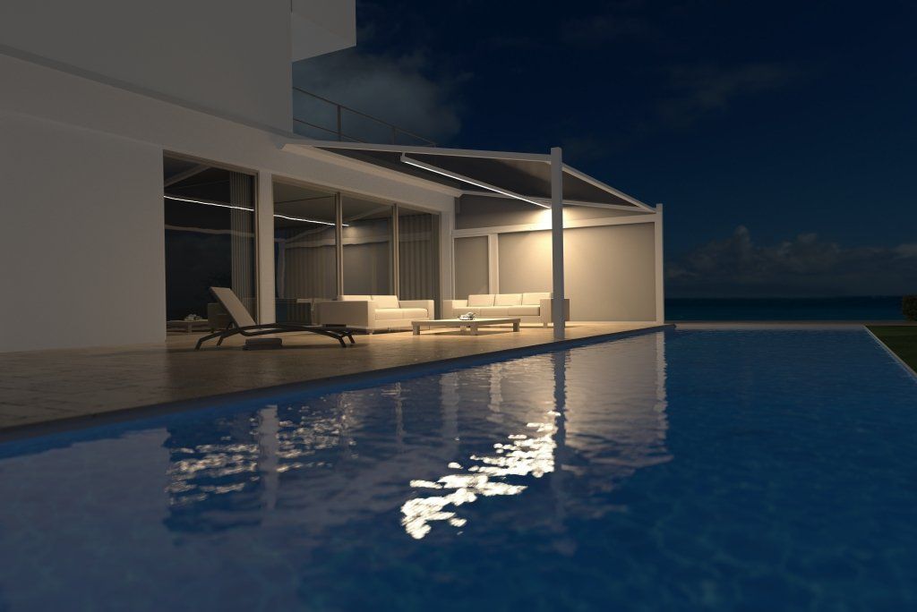 Når taket er lukket gir Lapure® beskyttelse mot sol, vind og regn. Du kan åpne taket for å nyte solen på terrassen din uten å måtte flytte strukturen.